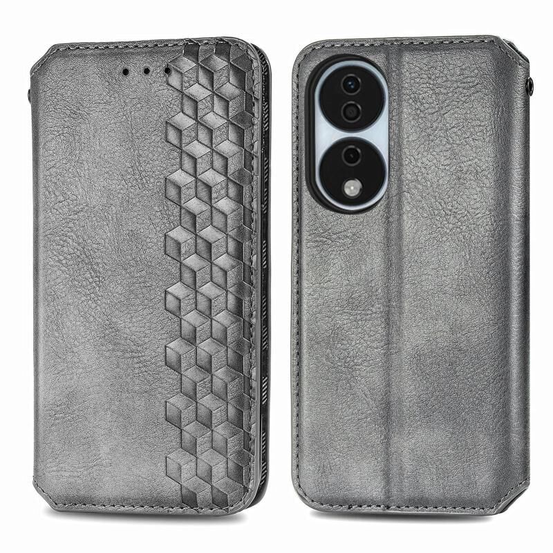 Για Honor X7b 4G Cubic Grid πιέζεται μαγνητική δερμάτινη θήκη τηλεφώνου (γκρι)