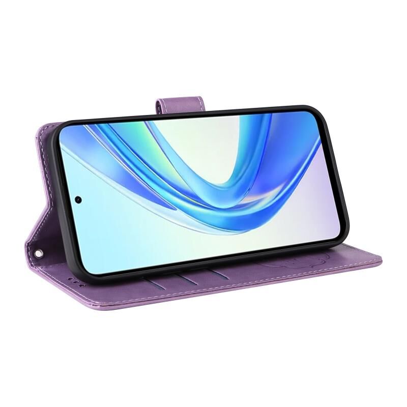 Θήκη τηλεφώνου από δέρμα με ανάγλυφα λουλούδια και πεταλούδες για Honor X7b 5G / 4G / 90 Smart 5G (Μωβ)