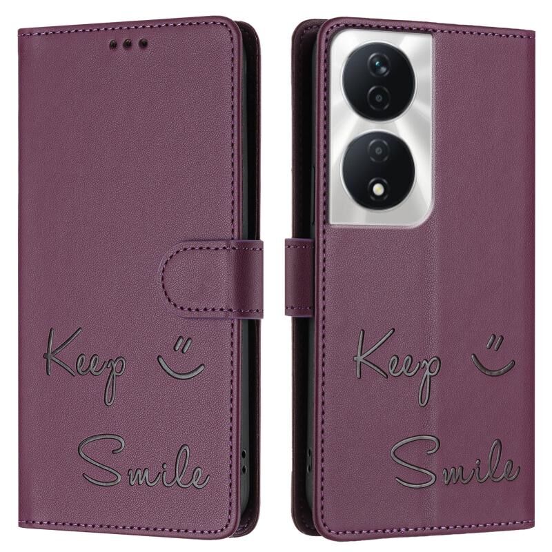 Θήκη τηλεφώνου από δέρμα με ανάγλυφο χαμόγελο και RFID για Honor X7b 5G Global / 4G Global (Μωβ)
