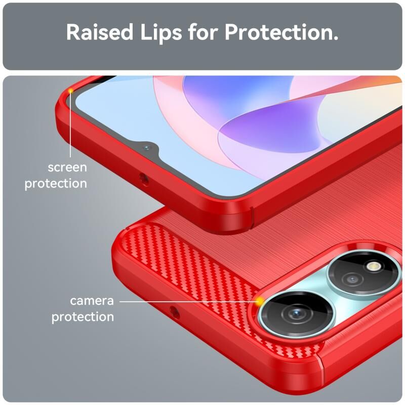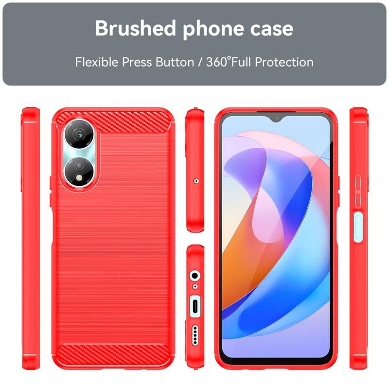 Για Honor X7b βουρτσισμένη υφή Carbon Fiber TPU τηλέφωνο υπόθεση (κόκκινο)
