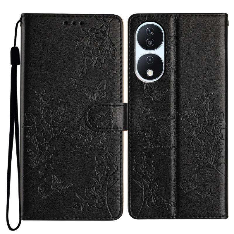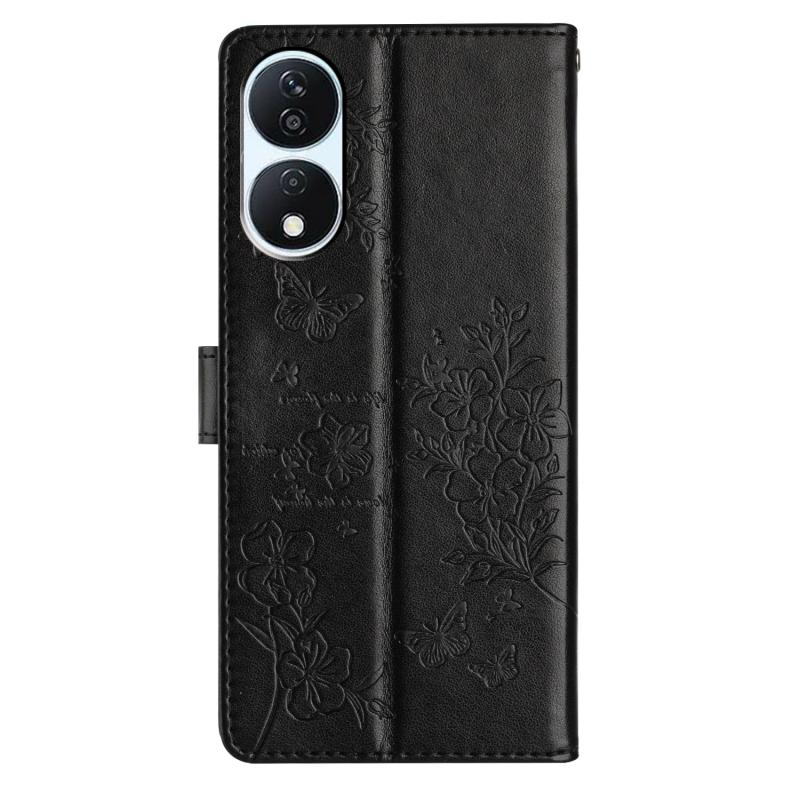 For Honor X7b Butterflies And Flowers Leather Phone Case(Black)