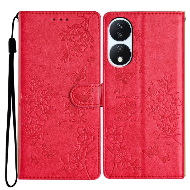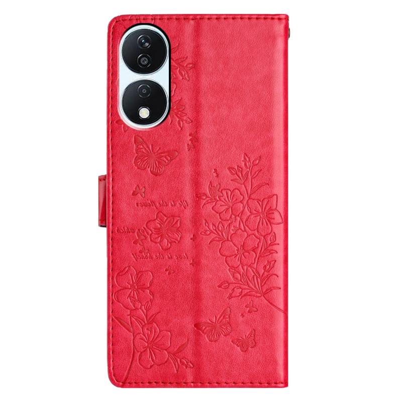 For Honor X7b Butterflies And Flowers Leather Phone Case(Red)