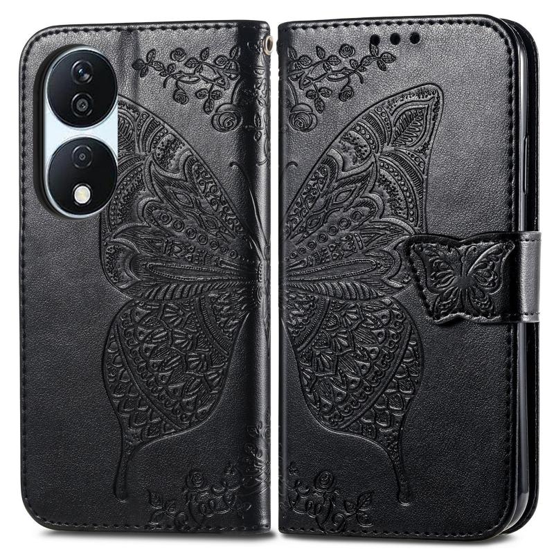 For Honor X7b Butterfly Love Flower Embossed Leather Phone Case(Black)