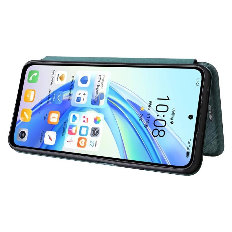 Θήκη τηλεφώνου από δέρμα με υφή ανθρακονήματος για Honor X7b (Μαύρο)