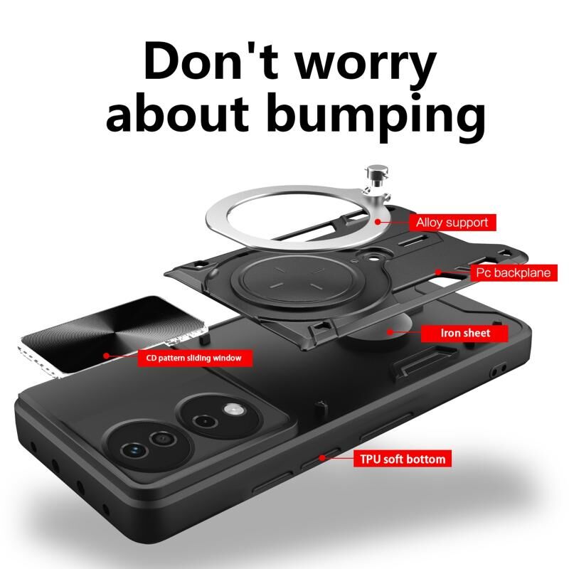 Θήκη κινητού τηλεφώνου για Honor X7b CD Texture Sliding Camshield Μαγνητική βάση (Μαύρο)
