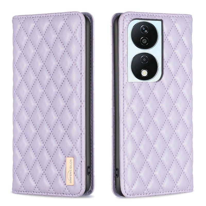 For Honor X7b Diamond Lattice Magnetic Leather Flip Phone Case(Purple)