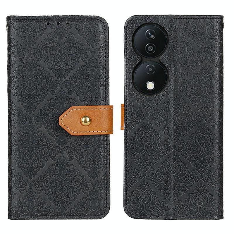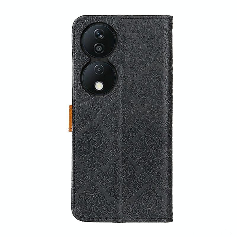 Για Honor X7b Ευρωπαϊκή Floral ανάγλυφο δέρμα τηλέφωνο υπόθεση (μαύρο)