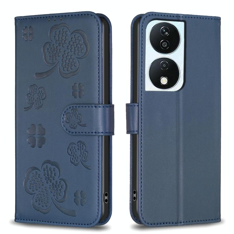 For Honor X7b Four-leaf Embossed Leather Phone Case(Blue)