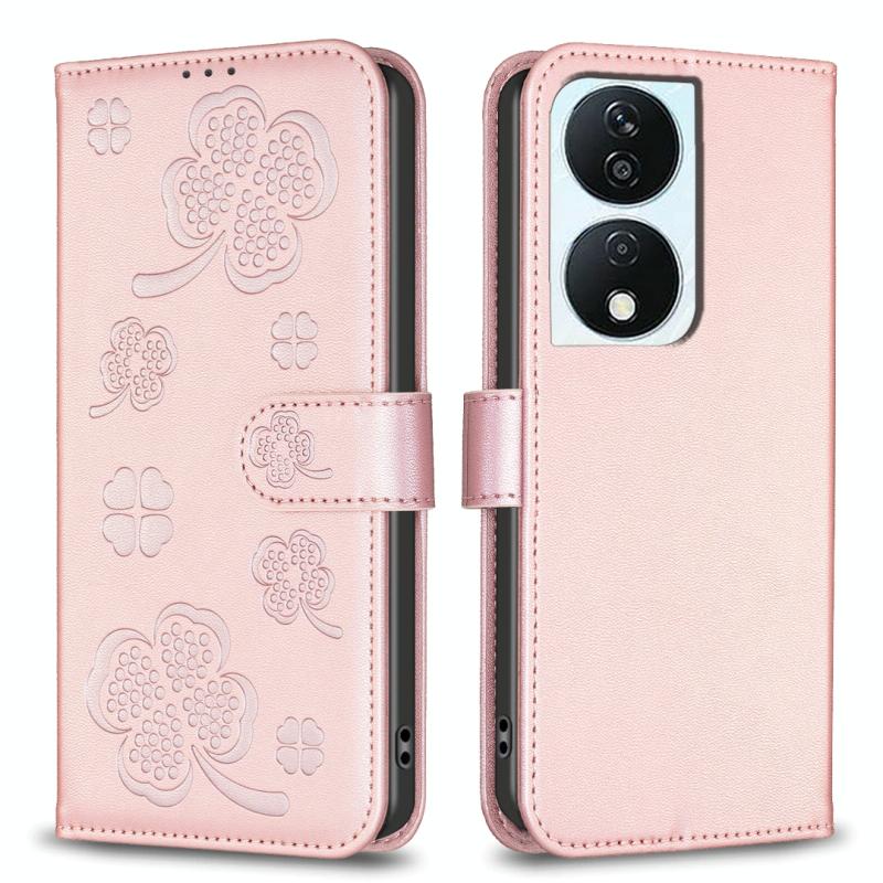 For Honor X7b Four-leaf Embossed Leather Phone Case(Pink)