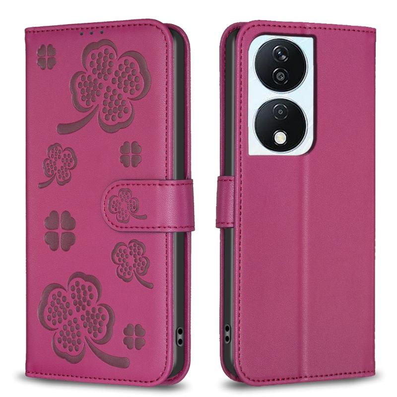 For Honor X7b Four-leaf Embossed Leather Phone Case(Rose Red)