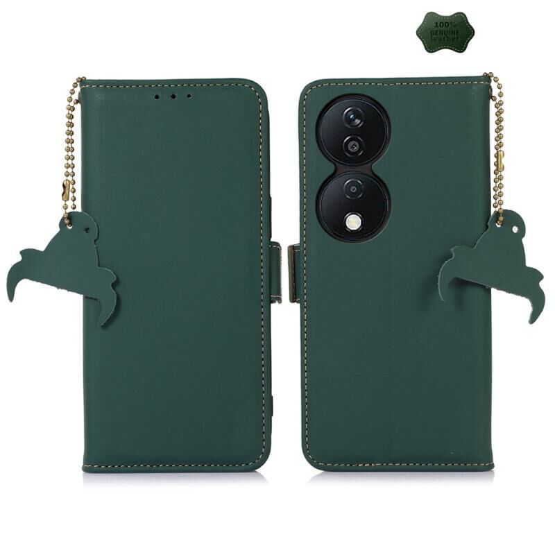 Θήκη τηλεφώνου από γνήσιο δέρμα με μαγνητικό κλείσιμο και προστασία RFID για Honor X7b (Μπλε)