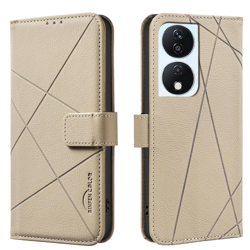 For Honor X7B Geometric Pattern RFID Leather Phone Case(Beige)