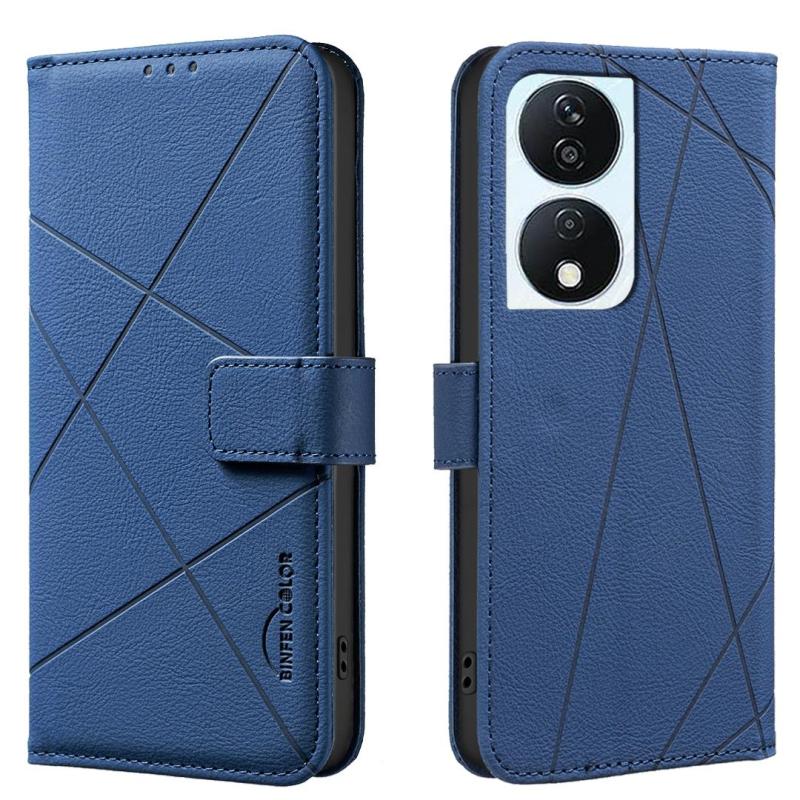 For Honor X7B Geometric Pattern RFID Leather Phone Case(Blue)