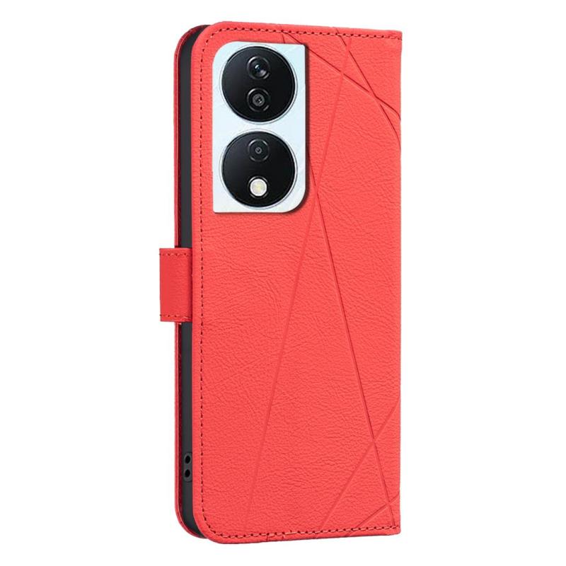 For Honor X7B Geometric Pattern RFID Leather Phone Case(Red)