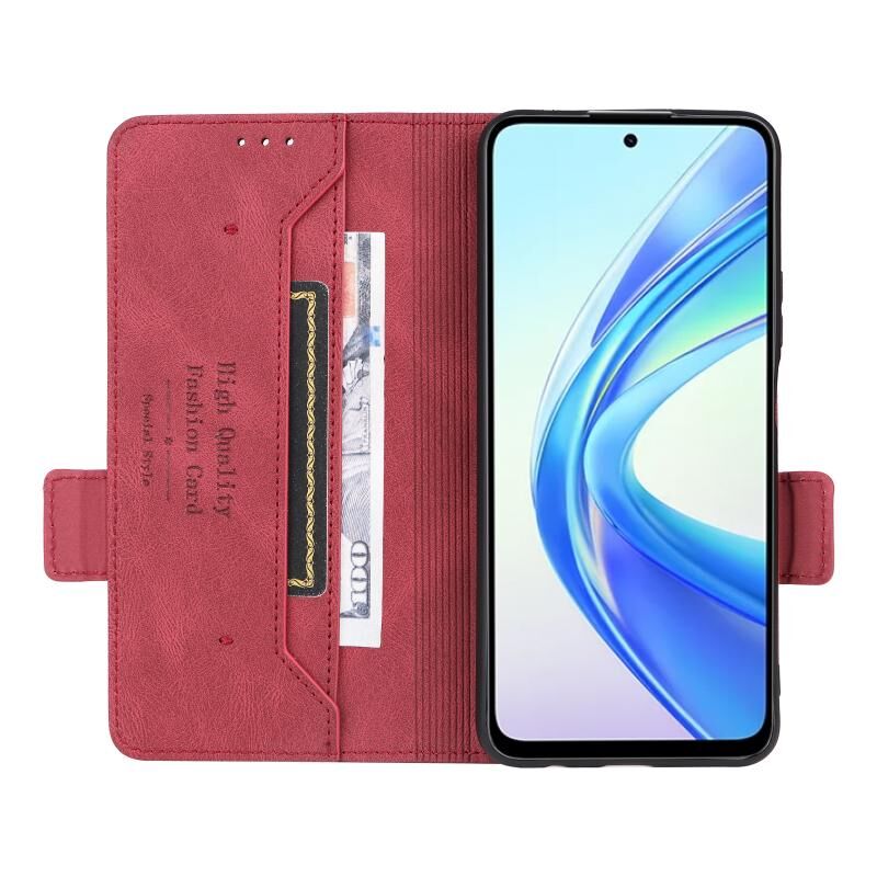 Θήκη τηλεφώνου δερμάτινη, τύπου flip, με μαγνητικό κούμπωμα για Honor X7b (Κόκκινη)