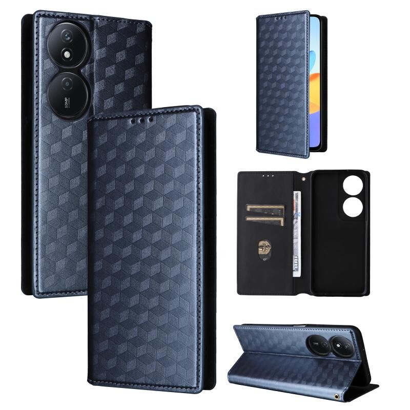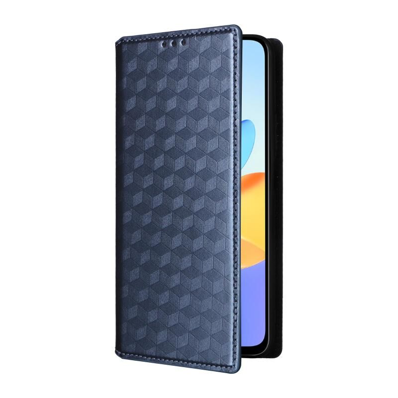 Θήκη τηλεφώνου από δέρμα με ανάγλυφη υφή κυβικού πλέγματος για Honor X7b / Play 50 Plus (Μπλε)