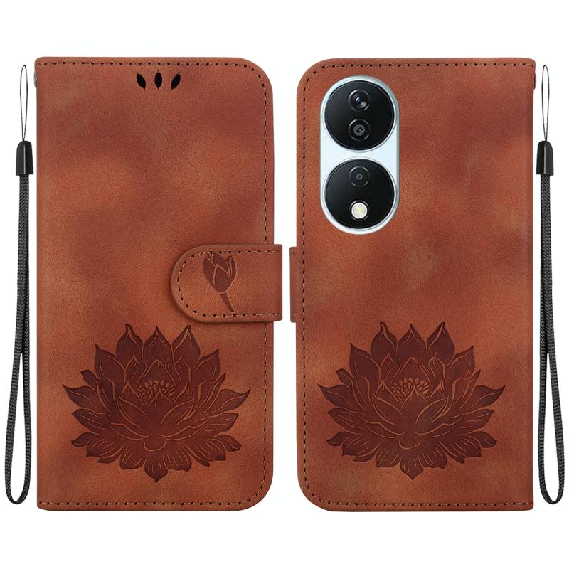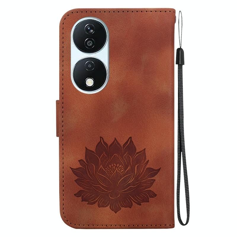 For Honor X7b / Play 50 Plus Lotus Embossed Leather Phone Case(Brown)
