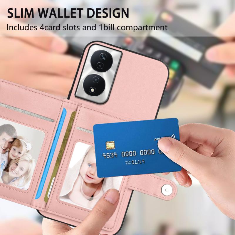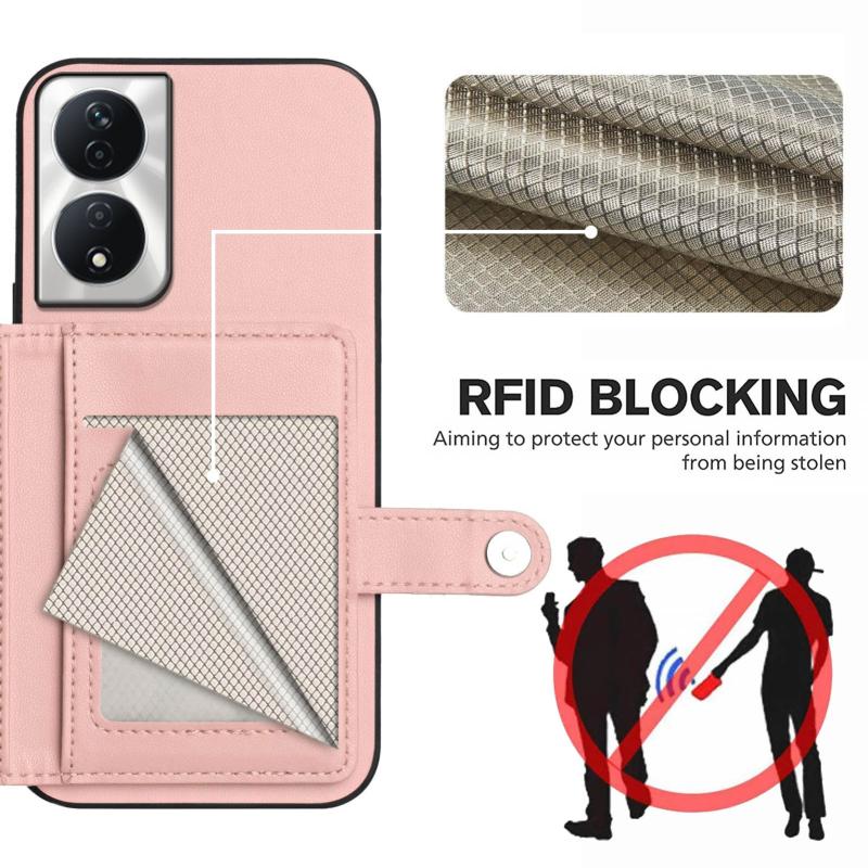 For Honor X7b / Play 8T 5G Button Card Bag RFID Anti-theft Phone Case(Pink)