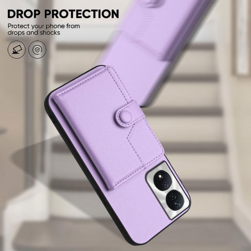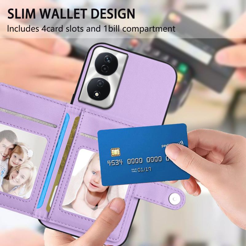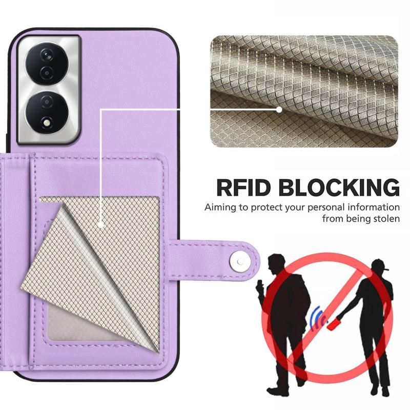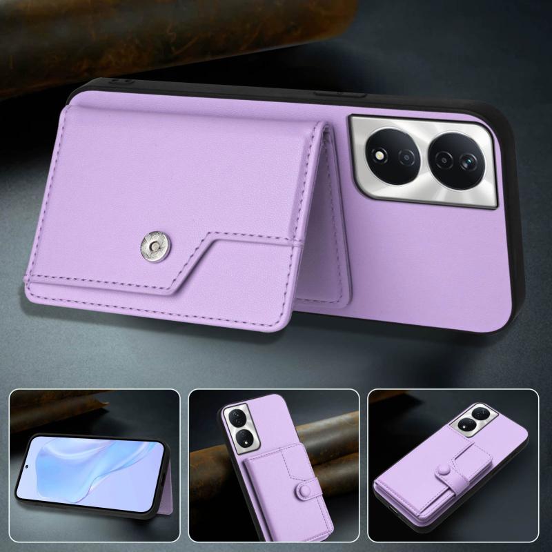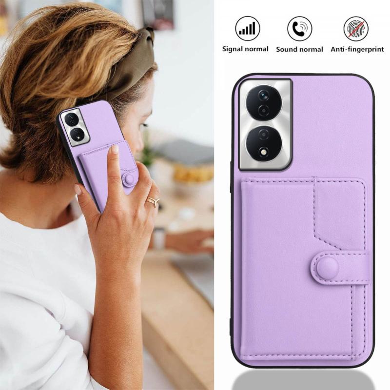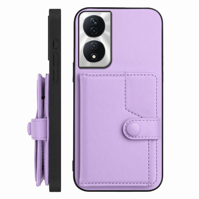 For Honor X7b / Play 8T 5G Button Card Bag RFID Anti-theft Phone Case(Purple)