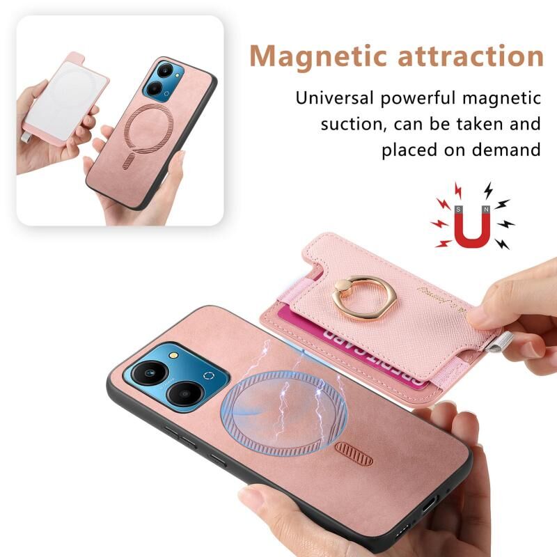 Θήκη τηλεφώνου για Honor X7b / Play 8T 5G, Retro Magsafe, Δερμάτινη με Δαχτυλίδι και Θήκη Καρτών (Κίτρινο)