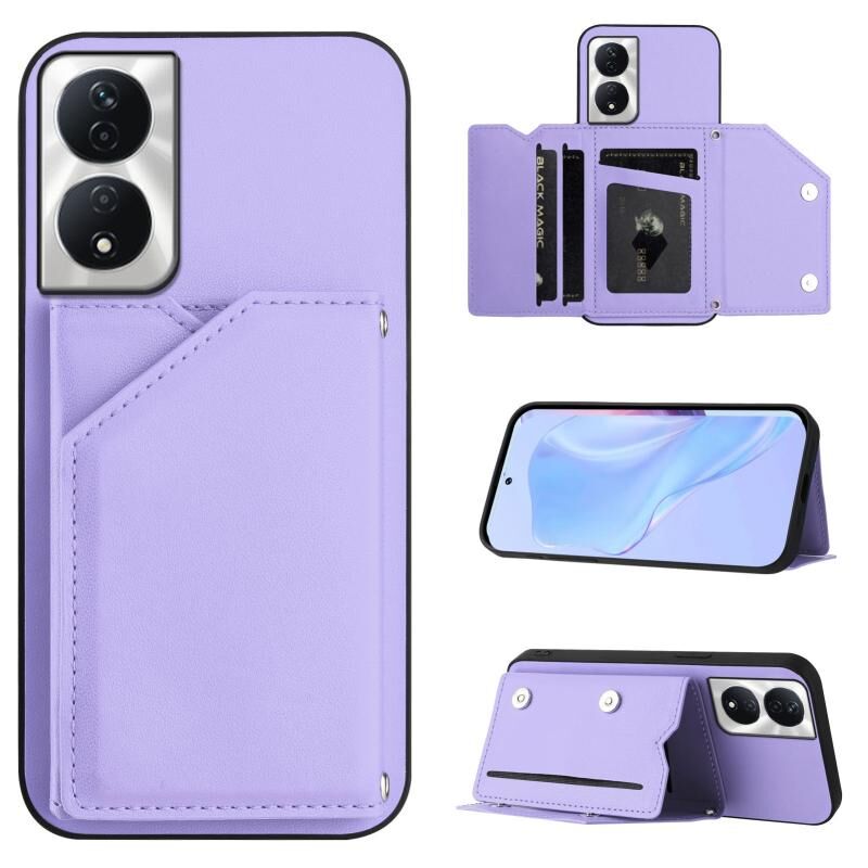 Θήκη τηλεφώνου για Honor X7b / Play 8T με αίσθηση δέρματος, τέσσερις θήκες καρτών και λουρί καρπού (Μωβ)