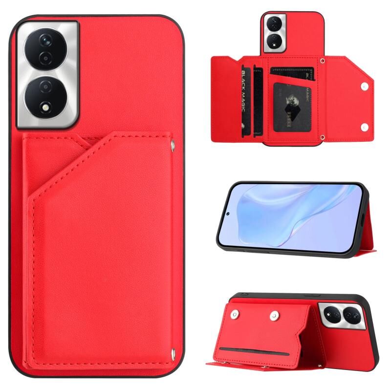 Θήκη τηλεφώνου για Honor X7b / Play 8T με αίσθηση δέρματος, τέσσερις θήκες καρτών και λουρί καρπού (Κόκκινο)