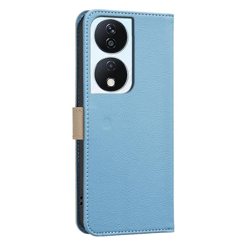 For Honor X7B Splicing Color Hollow Flower Pattern RFID Leather Phone Case(Baby Blue)