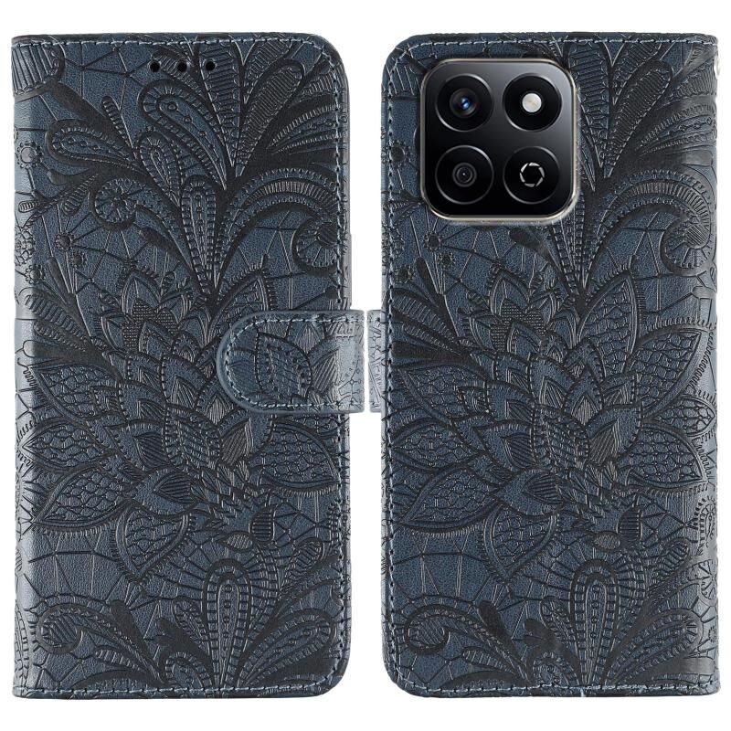 Θήκη τηλεφώνου από δέρμα με σχέδιο δαντέλας και λουλούδια, τύπου flip, για Honor X7c / Play 60 Plus (Γκρι)