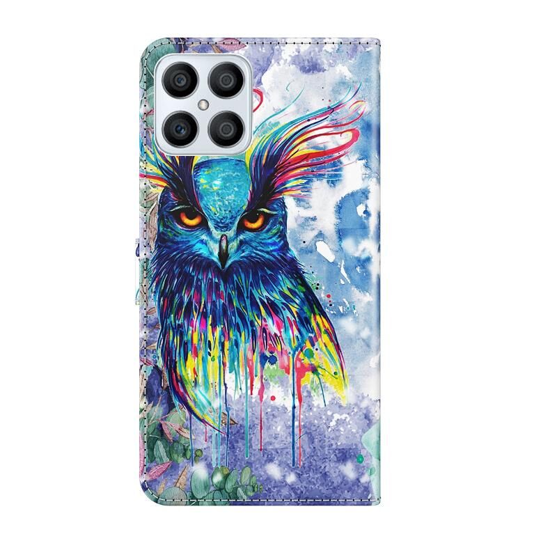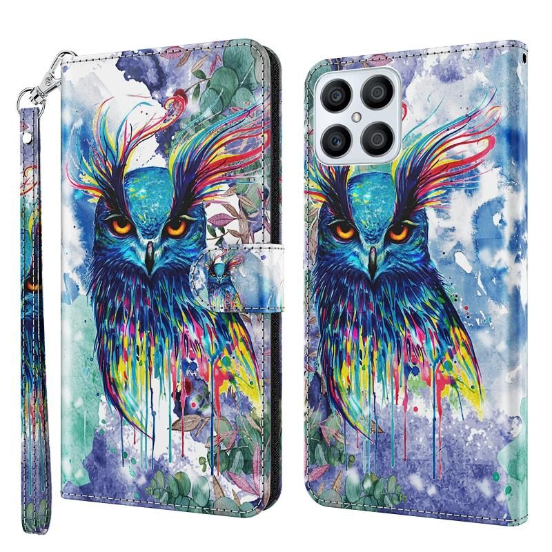For Honor X8 4G 3D Painting Pattern TPU + PU Phone Case(Watercolor Owl)