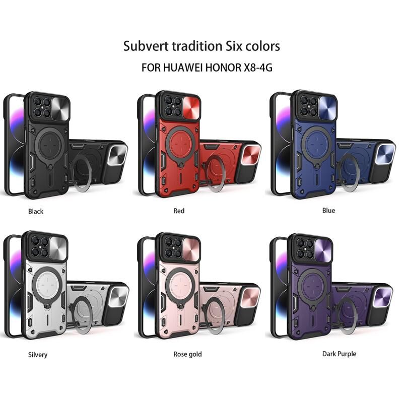 For Honor X8 4G CD Texture Sliding Camshield Magnetic Holder Phone Case(Silver)