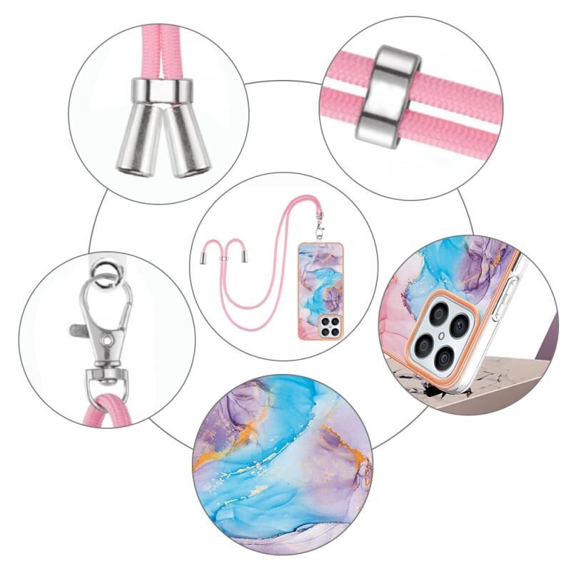 Θήκη κινητού τηλεφώνου για Honor X8 4G με επιμετάλλωση IMD TPU με κορδόνι (Ροζ Λέπια)