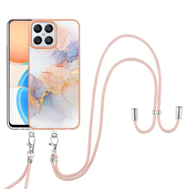 Θήκη κινητού τηλεφώνου για Honor X8 4G με επιμετάλλωση IMD TPU με κορδόνι (Ροζ Λέπια)