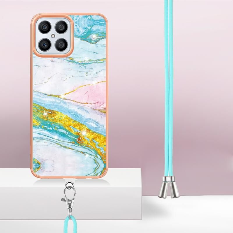 Θήκη τηλεφώνου για Honor X8 4G με ηλεκτρολυτική μαρμάρινη όψη IMD διπλής όψης με κορδόνι (Μωβ 001)