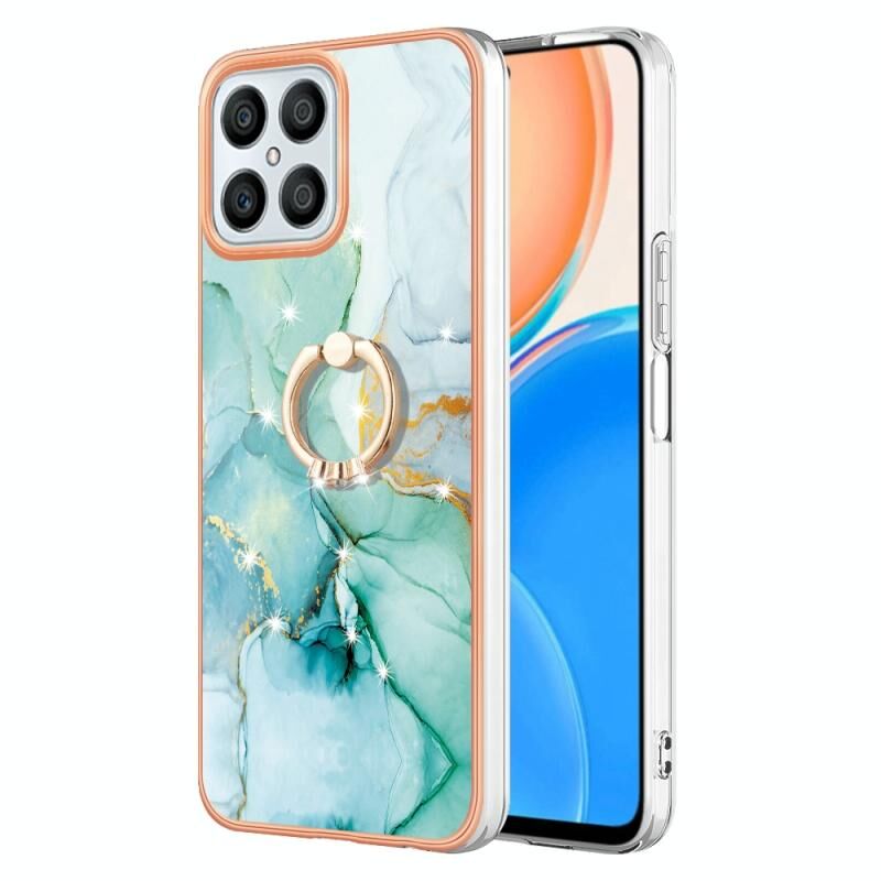 Θήκη κινητού τηλεφώνου για Honor X8 4G με Ηλεκτρολυτική Επικάλυψη, σχέδιο Μάρμαρου IMD, από TPU με Δαχτυλίδι Στήριξης (Λευκό 006)
