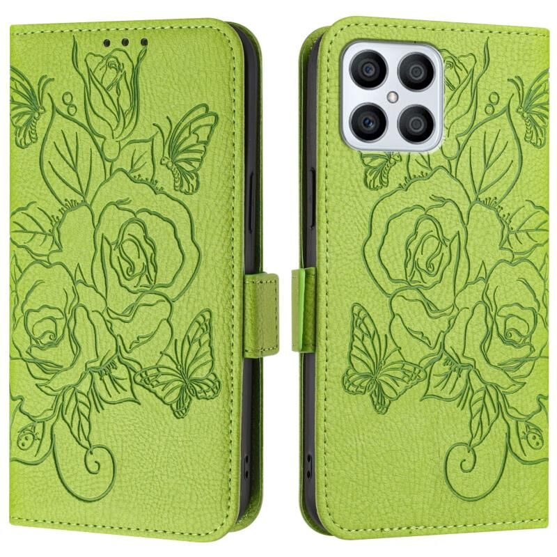 Θήκη τηλεφώνου από δέρμα με ανάγλυφο σχέδιο τριαντάφυλλου και προστασία RFID κατά της κλοπής για Honor X8 4G / X30i 5G / Play 6T Pro 5G (πράσινο)