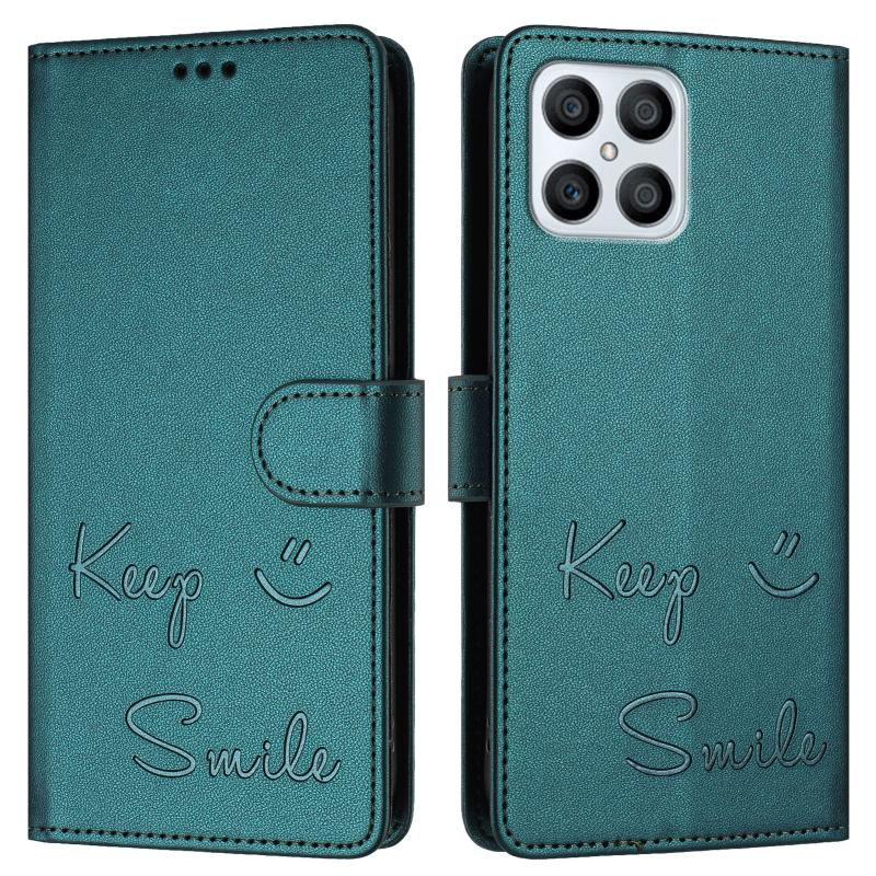 For Honor X8 4G/X30i 5G Smile Embossing RFID Leather Phone Case(Peacock Green)