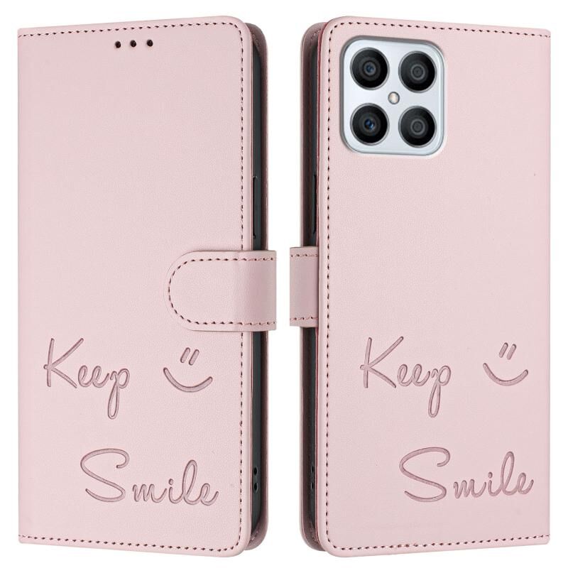 Θήκη τηλεφώνου από δέρμα με ανάγλυφο χαμόγελο RFID για Honor X8 4G/X30i 5G (Μέντας Πράσινο)