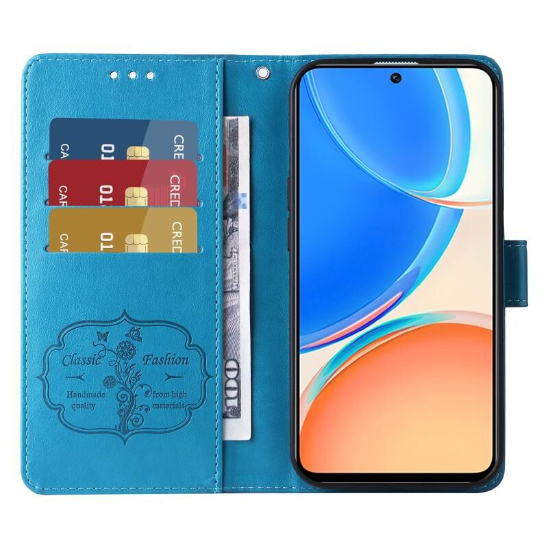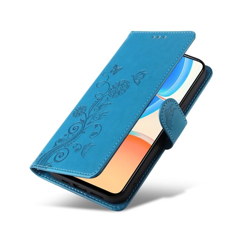 Θήκη τηλεφώνου από δέρμα με ανάγλυφα σχέδια πεταλούδας και λουλουδιών για Honor X8 4G / X30i / Play 6T Pro (Μωβ)