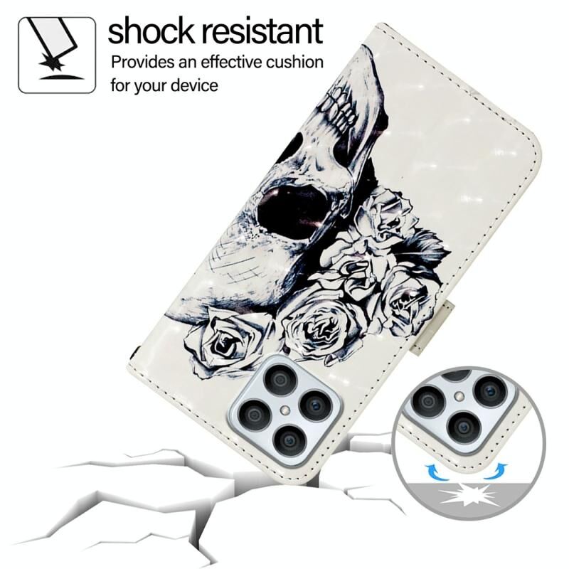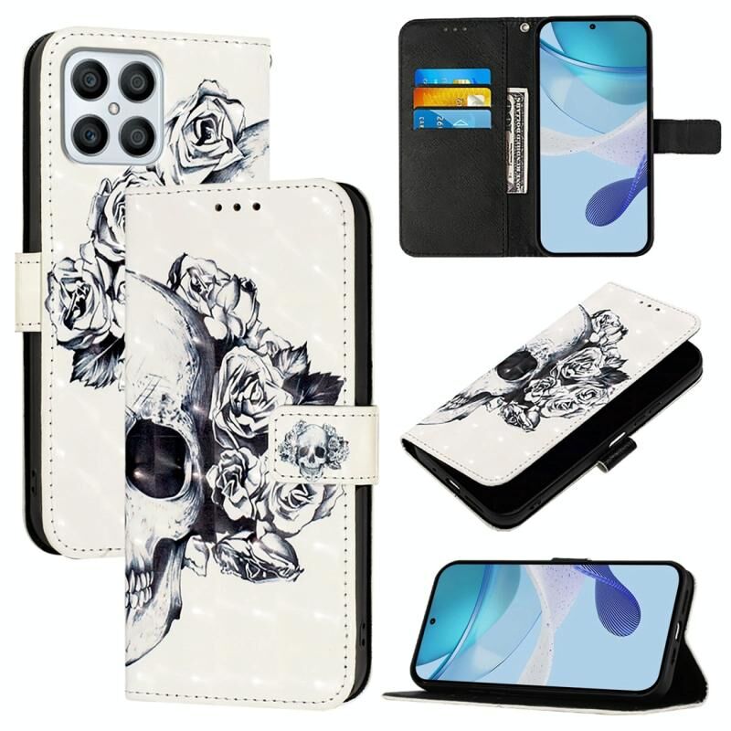 Θήκη τηλεφώνου από δέρμα με οριζόντιο άνοιγμα και τρισδιάστατη ζωγραφική για Honor X8 4G / X30i / Play6T Pro (Κρανίο)