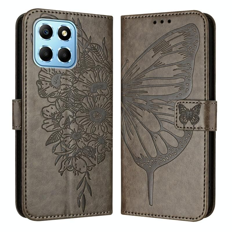 Για Honor X8 5G / 70 Lite / X6 / X6s ανάγλυφη πεταλούδα δερμάτινη θήκη τηλεφώνου (γκρι)