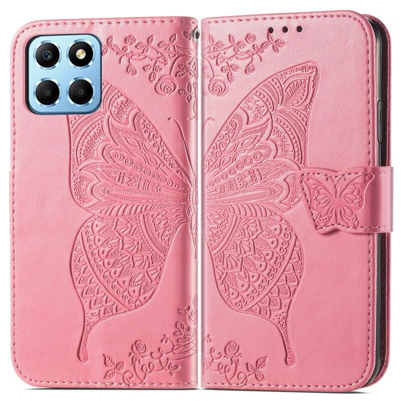 Θήκη τηλεφώνου από δέρμα με ανάγλυφο σχέδιο πεταλούδας και λουλουδιών για Honor X8 5G (Μπλε)