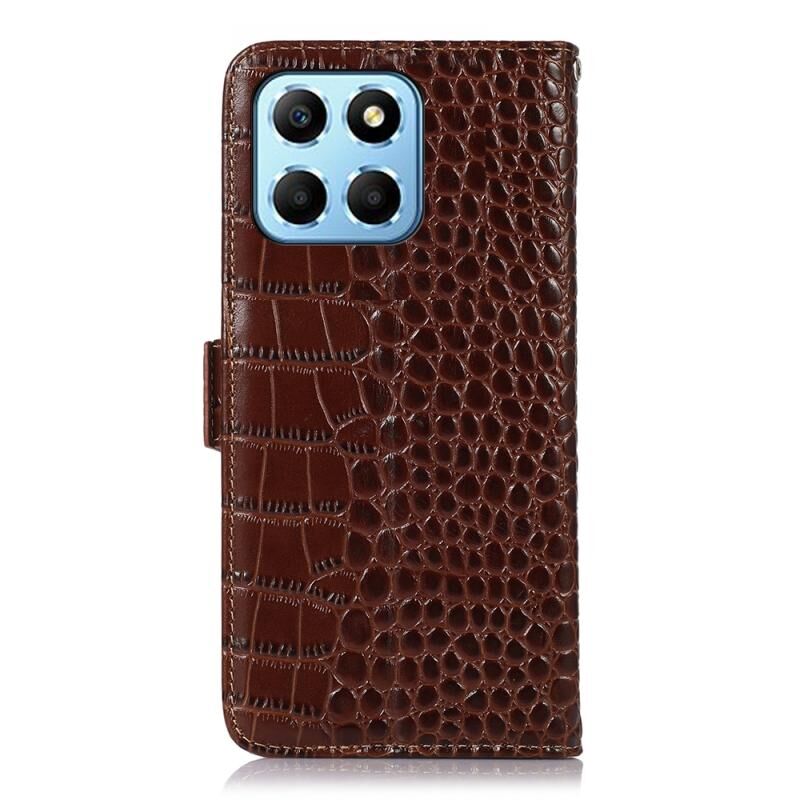 Θήκη τηλεφώνου από γνήσιο δέρμα αγελάδας Crocodile Top Layer για Honor X8 5G (Καφέ)