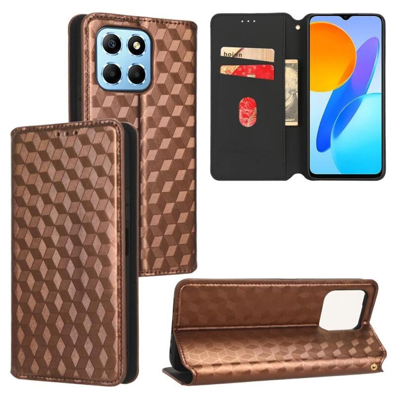 Θήκη τηλεφώνου δερμάτινη αναδιπλούμενη με υφή Cubic Grid για Honor X8 5G (Μαύρο)