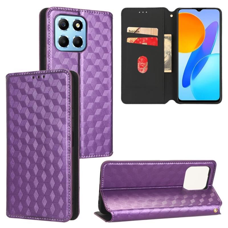 Θήκη τηλεφώνου δερμάτινη αναδιπλούμενη με υφή Cubic Grid για Honor X8 5G (Μαύρο)