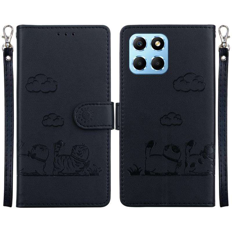 For Honor X8 5G Cute Cats RFID Leather Phone Case(Black)