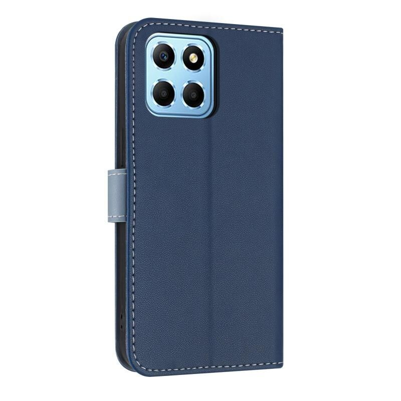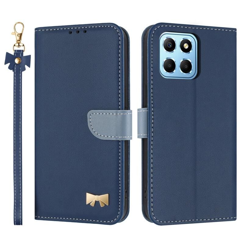 Θήκη τηλεφώνου από μέταλλο και δέρμα με λουρί χειρός για Honor X8 5G Global (Σκούρο μπλε)