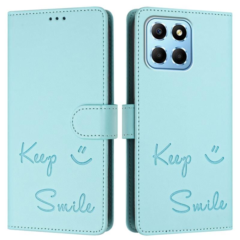 Θήκη τηλεφώνου από δέρμα με ανάγλυφο χαμόγελο RFID για Honor X8 5G Global/X6 4G Global (Μέντας πράσινο)