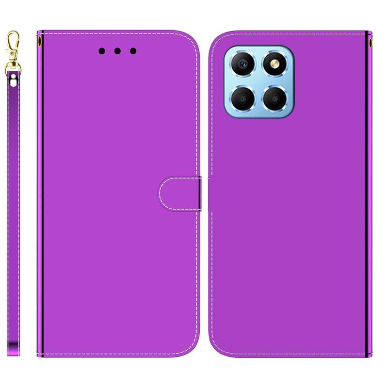 Θήκη τηλεφώνου από δέρμα με οριζόντιο άνοιγμα και απομίμηση καθρεπτικής επιφάνειας για Honor X8 5G (Μωβ)