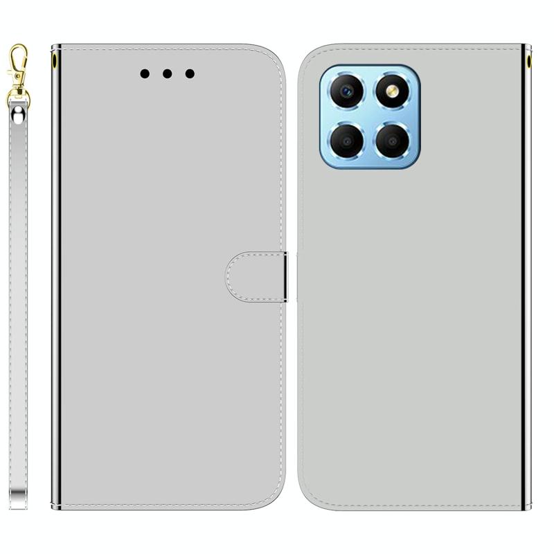 Θήκη τηλεφώνου από δέρμα με οριζόντιο άνοιγμα και απομίμηση καθρεπτικής επιφάνειας για Honor X8 5G (Ασημί)