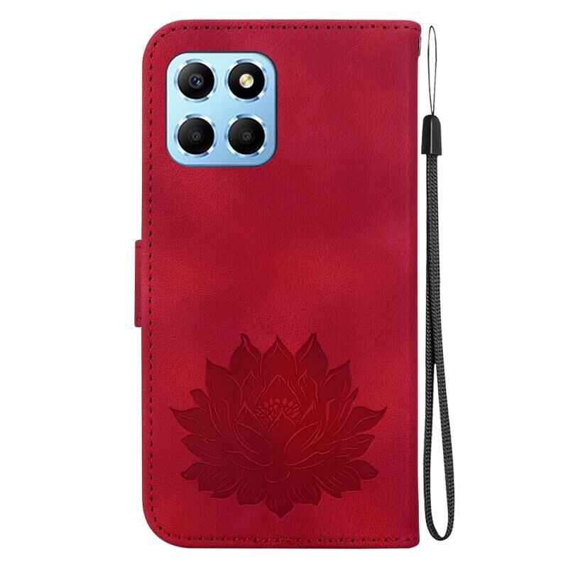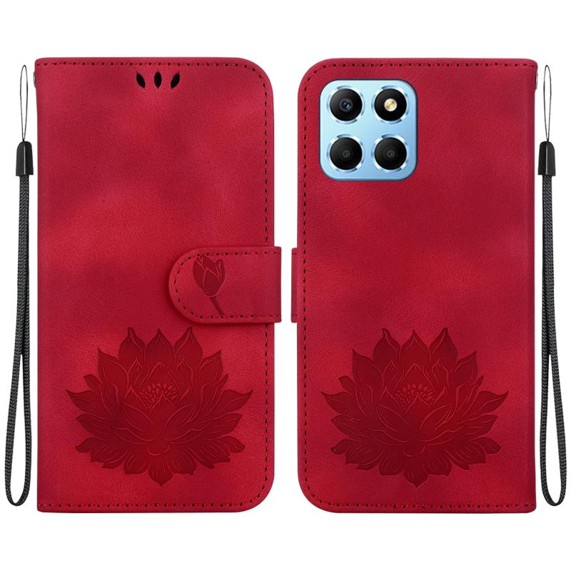 For Honor X8 5G Lotus Embossed Leather Phone Case(Red)